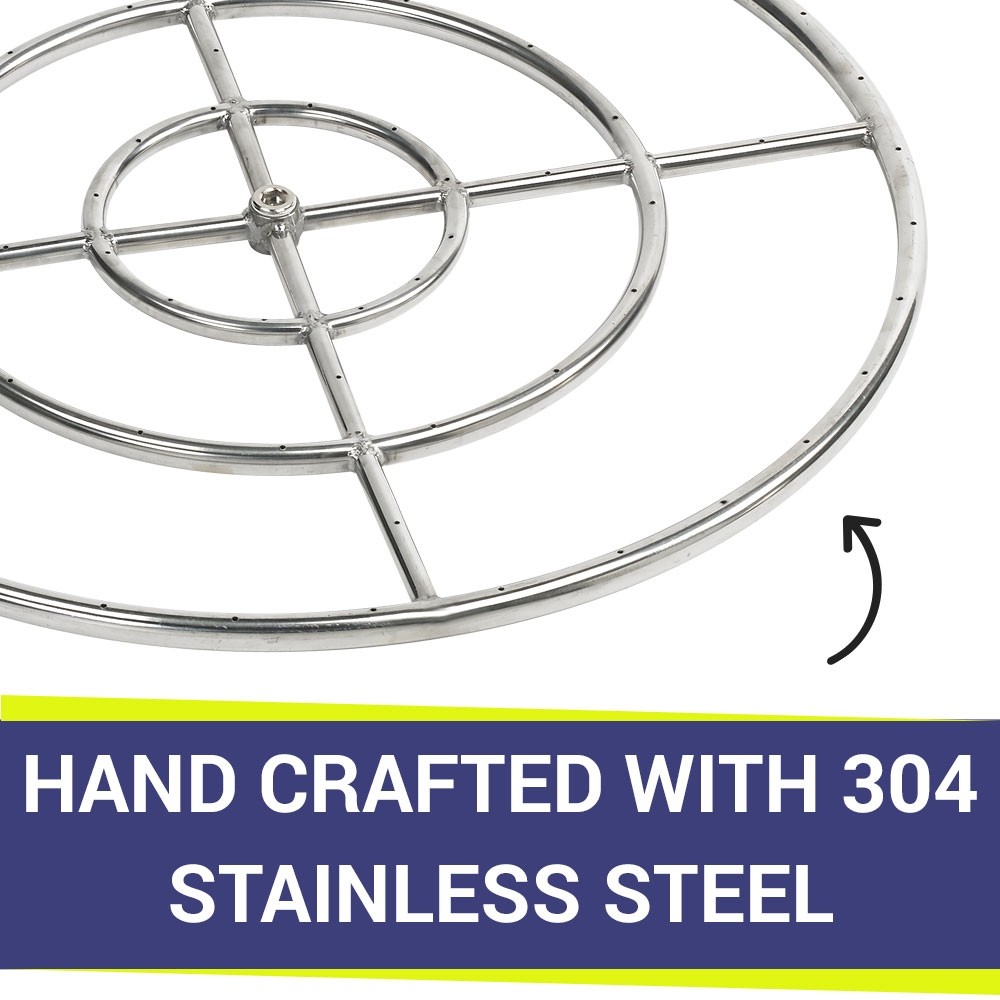 Made of 304 stainless steel, our 30" fire pit ring burner is not only elegant to behold, but also very durable. It can withstand extreme temperatures and harsh weather without any damage or discoloration. It will last for many years to come!