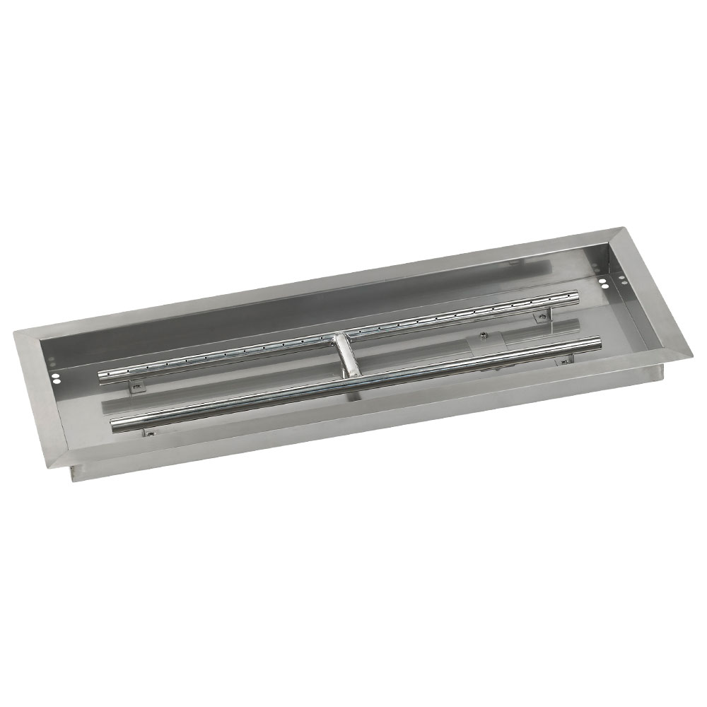 Description: Stainless steel drop in fire pit pan 1-1/4" flange and built-in H-burner