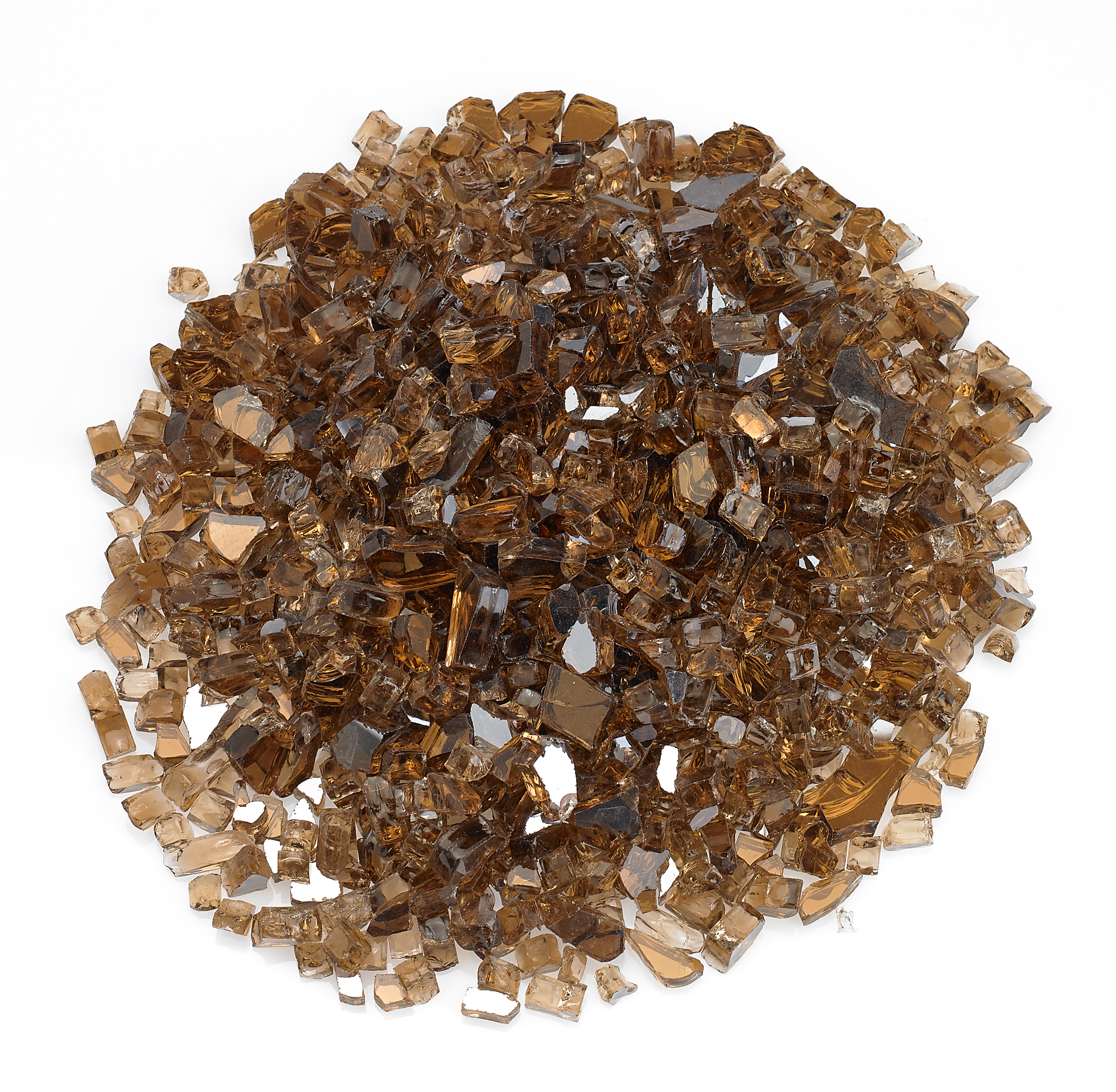 Deep orange-brown in color, our 1/4" copper reflective fire glass is the perfect choice for creating an ambient glow infused by the warm richness of copper and fire.