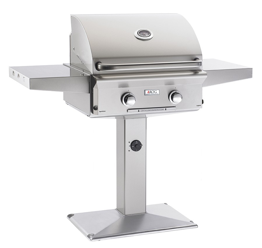 The American Outdoor Grill 24NPT post mount natural gas grill is designed for long-lasting, unsurpassed performance that produces unbelievable flavor. All AOG patio post grills may be bolted to a deck or concrete slab, and are optimized for parks,