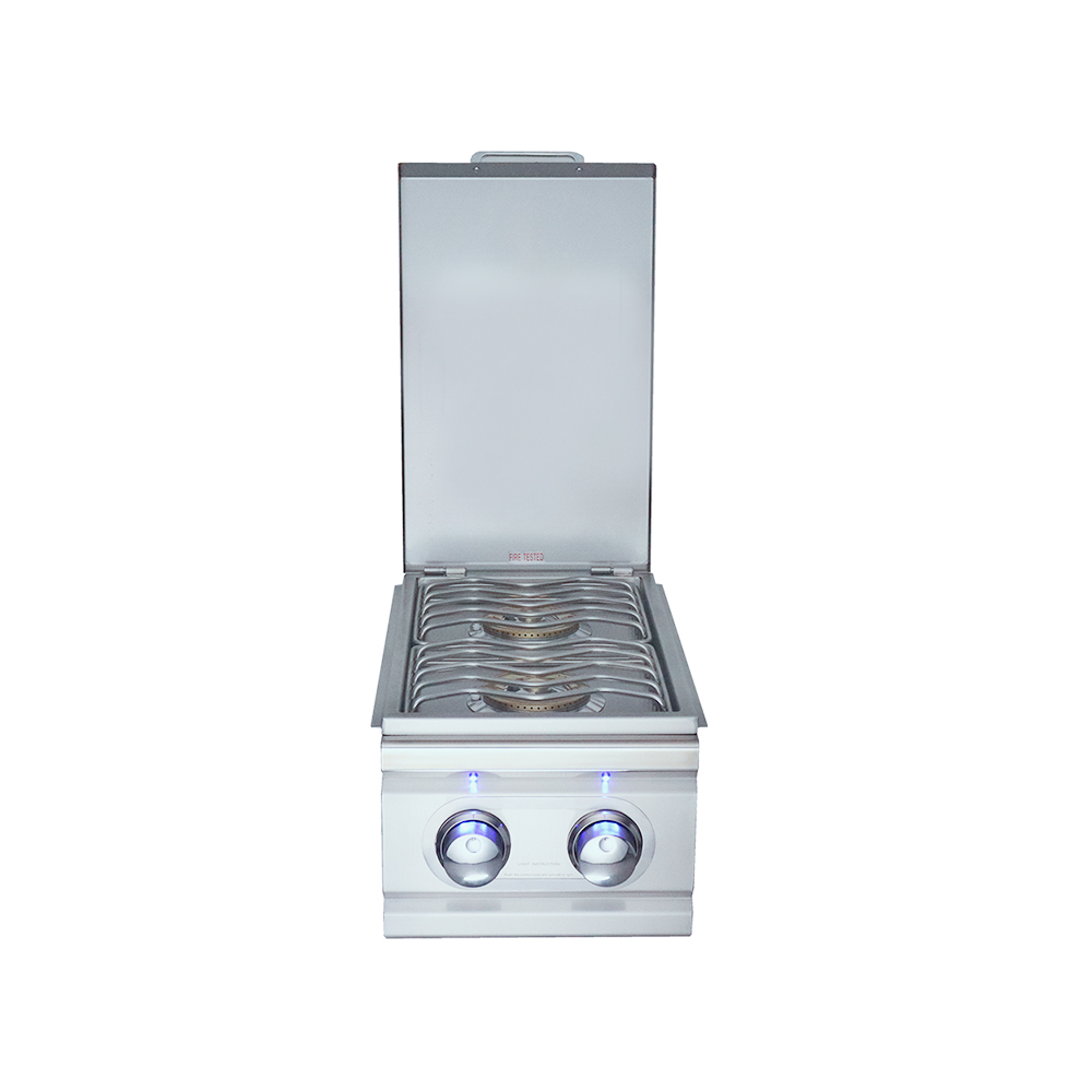 Whether you need to cook your vegetables or warm up sauces, our Cutlass Pro double side burner features two heavy duty 12,000 BTU burners for enhanced performance and superior heat retention. Built from stainless steel and designed to slide into your outdoor kitchen this unit will provided you years of outdoor cooking enjoyment. Includes ignition with made easy push and turn knobs that offer a reliable flame with every start. The stainless steel lid protects the burner when not in use.
