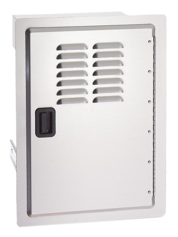 The natural stainless companion accessory for your outdoor summer kitchen. High quality stainless door, for the great appearance and durability you want for your summer kitchen. Classic Style Stainless Steel Louvered Access Door with pull tray for outdoor kitchens. Solid stainless steel frame and face with full-body hinge for years of outdoor use and dependability.