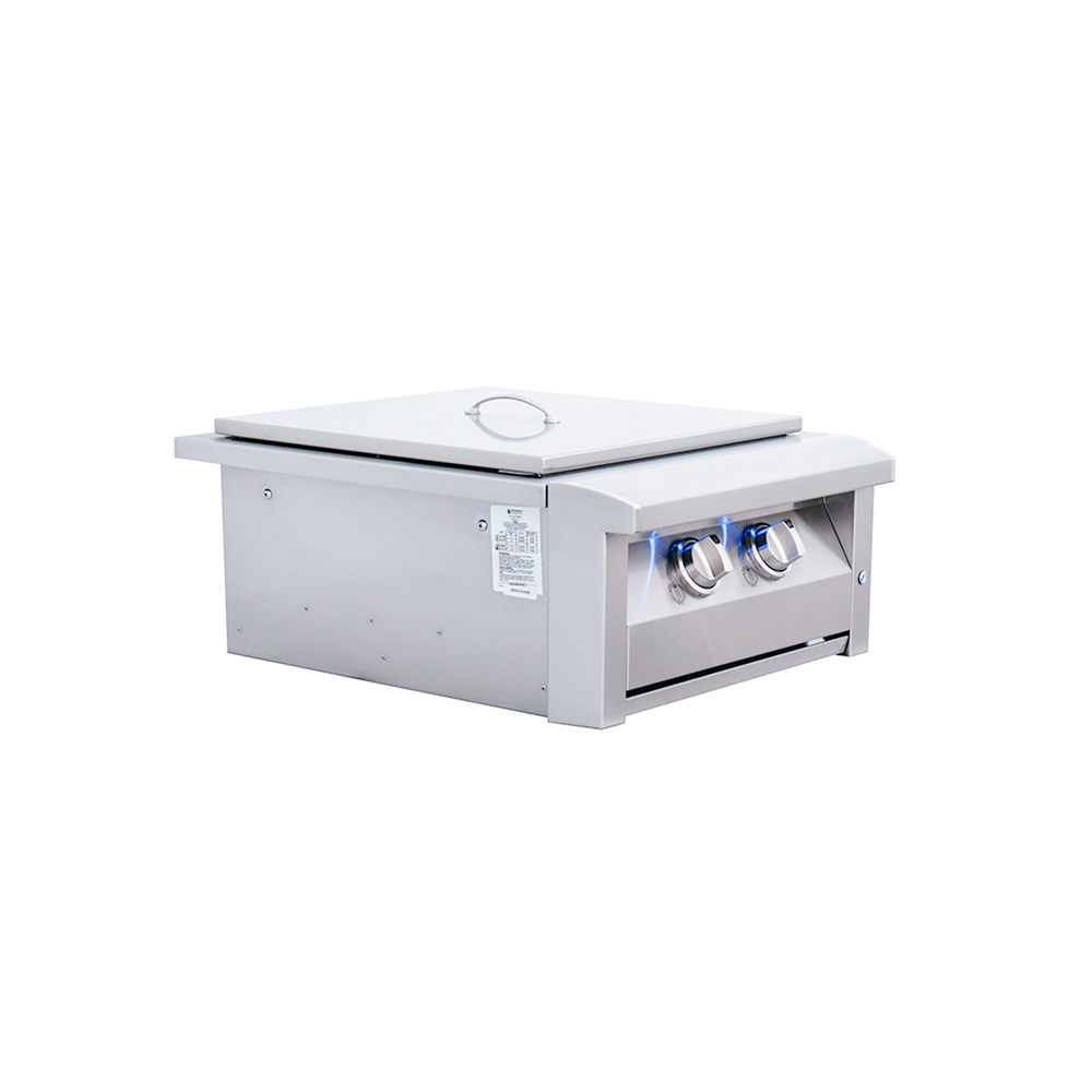 Bring a little bit of your indoor kitchen outdoors. The ASB3 is constructed of 304 stainless steel construction for maximum strength and stability. This side burner features one Solid Brass inner burner and 1 Stainless Steel outer burner for a total of 60,000 BTU’s, blue LED lights, and a removable wok-ring for cooking with round bottom pots, pans and woks perfect for sauces or dips.